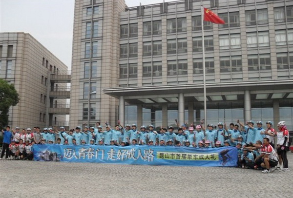 6月16日,由昆山团市委、捷安特自行车文体基金会共同举办的“迈入青春门,走好成人路”昆山市首届单车成人礼活动在第一职业中学举行。昆山团市委李凡副书记、捷安特(中国)有限公司郑宝堂总经理等领导出席仪式。我院15名学生参加了此次参加活动。