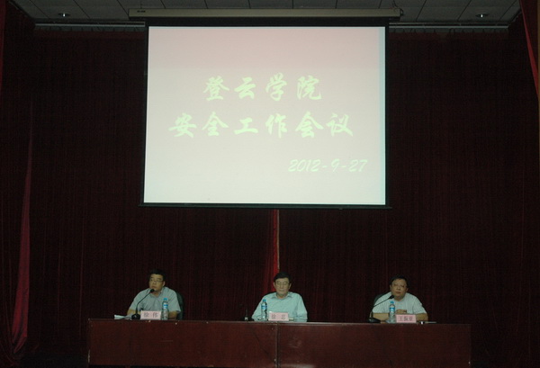 学院工作,任重而道远,安全工作则是学校工作的一个重要内容,安全不保,谈何教育?所以在教育教学过程中,登云学院一向把校园安全工作视为重中之重,时时讲安全,秒秒保安全。会上徐忠院长首先强调了校园安全需要注意的各个方面,诸如交通安全,消防安全,饮食安全等等,请大家一定要提高安全防护意识,强化健全校园安全措施。徐伟副院长作了总结,他要求:一是要规范学院管理和风险评估;二是要加强网络监控;三是要认真落实安全责任制和责任追究制;四是要做好全院学生的安全教育。