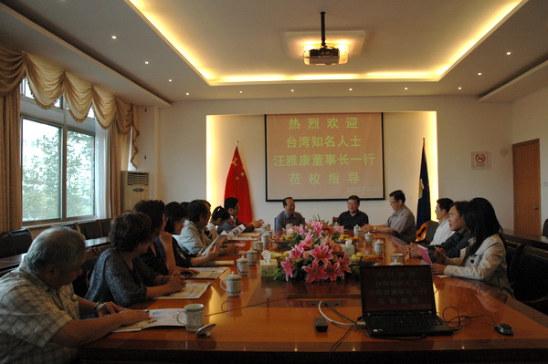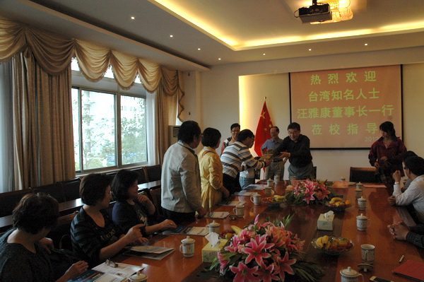 徐忠院长对汪雅康董事长一行的到来表示热烈欢迎。在听取了徐忠院长介绍我院建校历程、学科设置、“工学结合专班”人才培养模式与成果等情况后,汪雅康董事长对登云学院办学的先进理念,建校几年来各项事业取得的显著成绩表示高度赞扬,他充分肯定“工学结合专班”培养模式符合职业教育改革的方向。双方还就两岸职业教育的区别、大陆高职教育的发展方向、以及工学结合教育教学改革的具体措施等话题进行深入的讨论。会谈结束后,徐忠院长致赠纪念品,并合影留念。