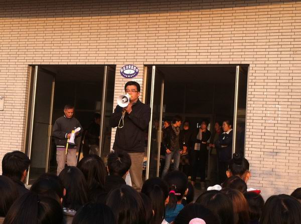 演练开始前,学院徐伟副院长向参加演练的同学进一步阐述了组织这一次演练的指导思想和目的,要求同学们把演练当作真实的突发事件来对待,严肃、认真地完成演练任务,切实提高避险意识和应对突发事件的应变能力,力争在一旦发生突发事件时,把损失降低到最低程度。保卫处周老师向参加演练的同学宣布了疏散演练方案,提出了疏散演练中的注意事项,强调了疏散演练中的有关纪律要求。