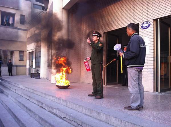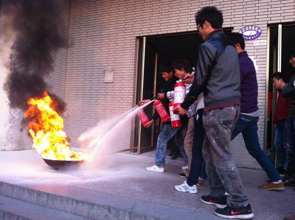 简单集结后,派出所消防协管员张警官就尽快掌握灭火救灾知识,学会熟练使用灭火器材进行灭火救灾等问题作扼要的讲解和示范。随后开始灭火演练,数名同学先后多次手持干粉灭火器对准“目标”喷射,熊熊烈火迅速被“扑灭”,几位女同学也踊跃参加“灭火”,师生们得到了一次实实在在的锻炼。