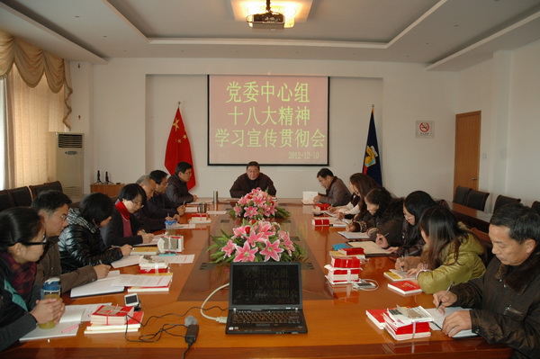 12月10日下午,院党委中心组召开学习会,认真学习十八大精神。党委书记徐忠主持学习时强调,认真学习宣传贯彻十八大精神,把思想统一到党的十八大精神上来,把力量凝聚到党的十八大确定的各项任务上来,是当前和今后一个时期首要的政治任务,更是我们基层党组织最重要的工作任务。党委已对学习作了部署,今天召开学习会先学一步。希望各支部认真抓好本单位十八大精神的学习宣传和贯彻,联系实际推动我院以工学结合专班为载体的高职教育教学改革,努力办人民满意的教育,为国家的现代化事业做出贡献。