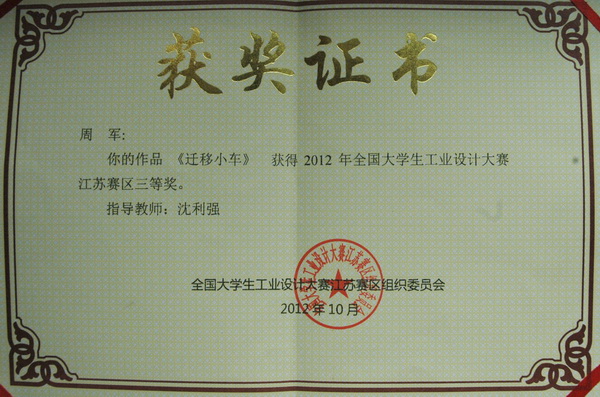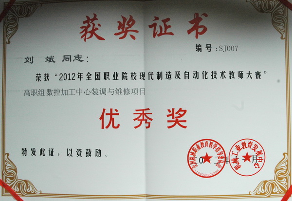 机电工程系实训车间的教师团队们,以拓展教师能力水平和培养学生创新精神、实践能力为指导,在完成实训教学任务的同事,积极报名参加全国性大赛。他们克服缺乏专用实训操练设备及准备时间短等诸多困难,在由全国机械职业教育指导委员会和机械教育发展指导中心举办的“2012年全国职业院校现代制造及自动化技术教师大赛”和“高职组数控加工中心装调与维修项目”两项比赛中,刘斌、唐建林两位老师在高手如云、个个身手不凡的对手中脱颖而出,捧回了“2012年全国职业院校现代制造及自动化技术教师大赛优秀奖”;沈利强老师指导的数控11班周军同学的作品《迁移小车》获得了“全国大学生工业设计大赛江苏赛区三等奖”,为登云学院赢得了荣誉!