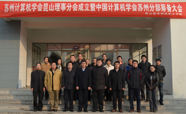 2012年12月18日,苏州市计算机学会昆山理事分会成立暨中国计算机学会苏州分部筹备会议在我院隆重举行,出席成立大会的有昆山市科协高云副主席、科协学会部曹小芳部长,学会理事长朱巧明教授、常务副理事长姚建民教授、秘书长陈志峰教授,学会常务理事李克清教授、李金祥教授、李冬教授,常熟、张家港、太仓等理事分会负责人,以及昆山各高校、IT知名企业的代表近30人。