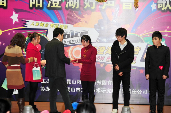 2012年12月25日由昆山阳澄湖科技园有限公司和昆山市工业技术研究院有限责任公司联合举办的第一届“阳澄湖好声音”决赛如期举行。比赛分为初赛、复赛、决赛三场。我院学生谭超亚同学代表学院参加比赛,并拿到了第二名的好成绩。