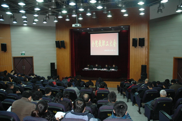 3月1日下午,我院在多功能报告厅召开全体教职工大会,布置2013年各项工作。院领导徐忠、王振亚、徐伟、王波、郭美玲出席会议。
