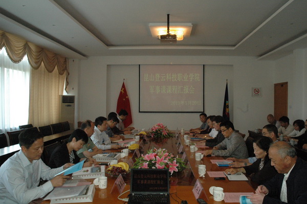 军事课课程评估检查汇报会在大会议室举行。院党委书记、院长徐忠,副院长徐伟、王波及党办、院办、教务处、学生处、人事处、财务处、总务处、保卫处、团委等相关职能部门负责人以及军事课课程教师参加了汇报会。