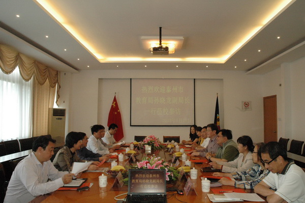 5月28日上午,泰州市教育局孙晓龙副局长、泰州机电高等职业技术学校孟华锋副校长等一行6人莅校参访。徐忠院长、王振亚常务副院长、王波院长热情接待了来访嘉宾。