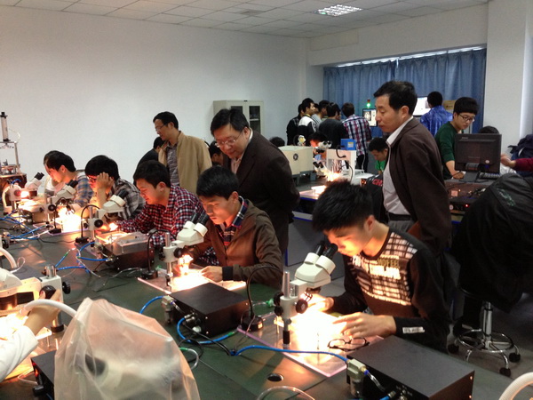 王振亚常务副院长介绍了我院创建背景、人才培养、教育教学改革及江苏省先进制造技术人才培养共享型实训基地建设等情况。俞宁副院长对我院建校8年来各项事业取得的显著成绩表示称赞,并介绍了淮安信息学院的发展历程、系科设置、人才培养及SMT生产型实训中心建设等情况。他表示,该实训中心拥有国际领先的SMT设备和技术,学生可以接触、学习到最新的工艺流程和技术,让学生走上工作岗位后即可熟练地应用SMT。双方就实训室设计建设、设备使用与维护、产学研管理等进行了深入交流。座谈会后,王振亚常务副院长一行参观了学院SMT实训中心,观看了学生实际学习、设备操作等情况。此次考察,为我院SMT实训中心项目的规划建设提供了重要参考和宝贵经验,对我院共享型实训基地建设起到良好的帮助和促进作用。
