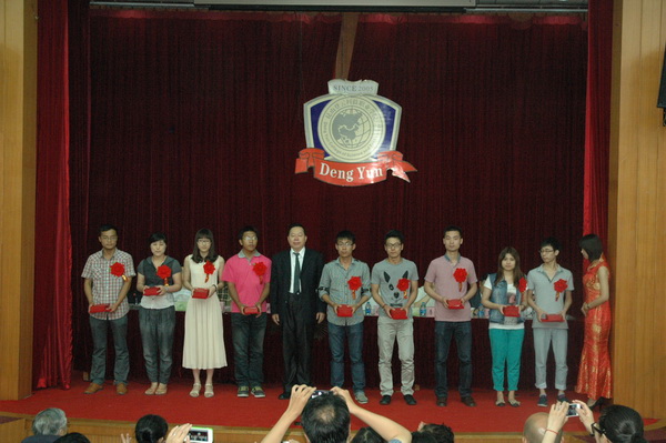 六月,骄阳似火的季节,又到了送别毕业学子的时刻。庄重典雅的教学楼静静矗立仿佛在诉说临别寄语,新落成的综合宿舍楼闪动着希望和对毕业生的美好祝愿。21日上午9时,我院在多功能报告厅隆重举行优秀毕业生表彰大会,在主席台就坐的领导有:我院林赐农董事长、登云教育咨询公司潘奇威董事长、李先立执行董事、沈尤成监察人,院领导徐忠、王振亚、徐伟、王波,学院中层干部以及40名教师代表,41名优秀毕业生代表共245人参加典礼。大会由王波副院长主持。