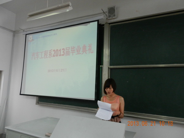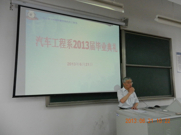 又是一年栀子花开的季节,校园中清香四溢,路边挂满欢送毕业生的横幅,亦是一年毕业季。毕业,包含了太多的情感,有不舍,有兴奋,也有期待。6月21日上午10时,我院汽车工程系2013届毕业典礼在J3-412教室召开,系主任魏崇光、副主任郝士凤、毕业班辅导员、专业课教师和75名毕业生参加典礼。