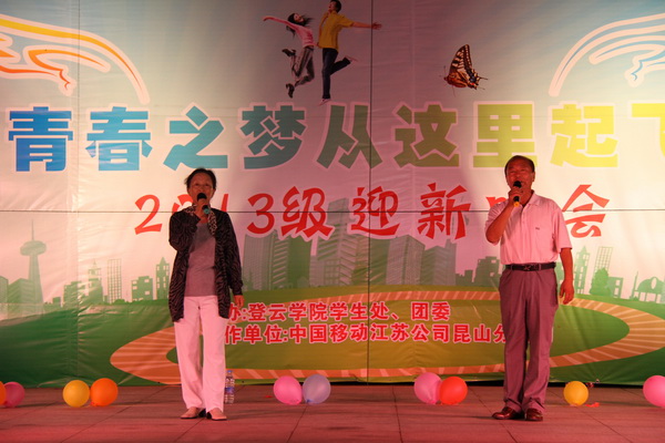 9月22日晚,以“青春之梦从这里起飞”为主题的2013级迎新晚会在我院运动场隆重举行。党委副书记、副院长徐伟,军训教官、学生处、各系辅导员和2013级全体新同学共同观看了晚会。