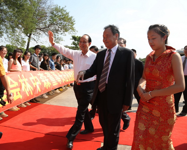 九月的登云学院,秋高气爽,阳光灿烂。17日下午,台湾海基会董事长林中森来到学院视察工作,亲切看望师生并发表演讲。江苏省教育厅副厅长丁晓昌、江苏省台办副主任王少邦、昆山市副市长夏小良、昆山市台协会会长李宽信陪同视察。我院董事长林赐农,执行董事李先立,院领导徐忠、徐伟、王波、郭美玲以及全体教师和学生代表热烈欢迎林中森董事长。