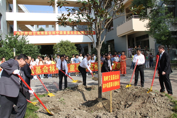 随后,林中森董事长和林赐农董事长、徐忠院长互赠礼品以示留念。会议结束后,林中森董事长一行来到校园,亲手种下一棵广玉兰树。2009年11月,时任海协会会长陈云林曾在视察我院时在校园内种植一棵广玉兰树,并以“千教万教教人求真、千学万学学做真人”一语勉励师生。今日,林中森董事长手植玉兰与之相互呼应,代表着登云在促进两岸职业教育交流与提升、人才培养等事业中又结硕果,表达了两岸各界对登云未来建设与发展的殷切期望,激励全体登云人坚定不移地走深化教育教学改革之路,深度融合两岸职业教育体系之精华,向着将学院打造成为高水平高职院校的目标迈进。