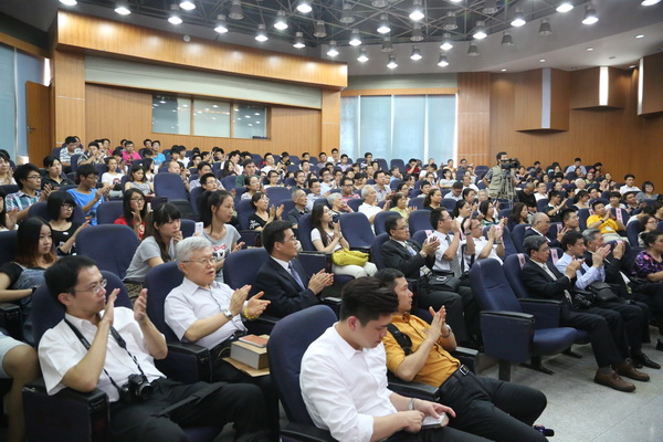 下午14时,林中森董事长一行来到登云。他一边听取林赐农董事长对学院的介绍,一边欣赏参观校园,来到行政楼大厅,更欣然提笔写下“登云化雨 杏坛流芳”八个大字。随后,林中森董事长来到多功能报告厅,全体师生起立并报以热烈的掌声。林中森董事长微笑向大家致意,并走上讲台发表讲话。他首先谈到对登云耳闻及面见的感受。他说,来到登云校园即感受到春风化雨般的温馨,登云融合两岸职业教育优势办学,以产业与企业发展方向为导向,培育了许多受各界欢迎的人才,在杏坛树立了典范。他对林赐农董事长热心办校、学院上下合力治校的精神和成就表示敬佩和感谢,对登云学院在两岸文化教育交流中做出的努力和贡献给予充分肯定和高度评价。他表示,两岸在经贸、文化等领域的合作愈发紧密,在教育领域的交流也不断扩大,双方优势互补、相互观摩、相互促进,对两岸教育的发展起到非常积极的作用。今年始,台湾开放大陆高职毕业生赴台攻读本科的政策,十分欢迎登云学院的毕业生赴台深造。他祝福登云学子前途光明,登云学院校运昌隆,两岸合作交流不断精进,共促和平、稳定、繁荣、发展。