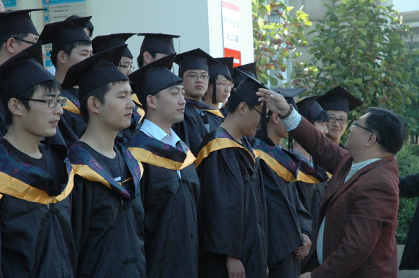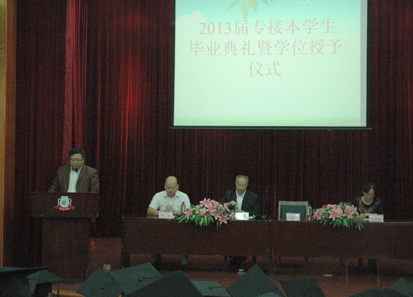 董平主任宣读了我院37位2013届“专接本”毕业生及同时获得学士学位者名单,王振州常务副院长逐一为毕业生颁布了毕业证书和学位证书,并为获得学士学位的每一位同学正冠拨穗。会后,院领导、老师们和毕业生合影留念,用相机定格了人生历程中难忘的回忆。