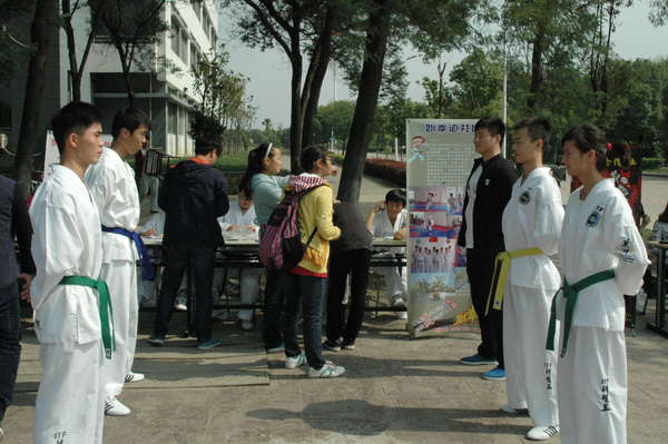 10月21日上午,我院学生社团新一届纳新活动在校门口的小树林前举行。现场,青年志愿者协会、扬帆大学生创业协会、跆拳道俱乐部、街舞社、书画协会等17个社团纷纷以大幅海报、现场表演等形式不遗余力地展示各自的特色和成果,以吸引2013级新生加入社团。