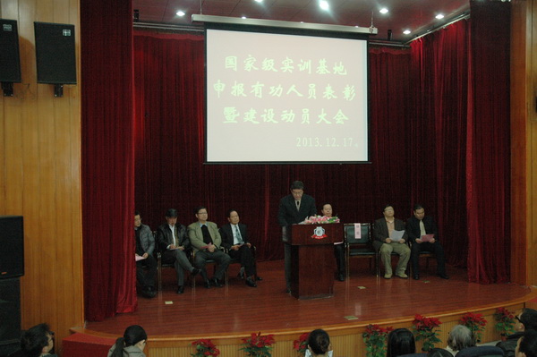 12月17日上午,我院国家级实训基地申报有功人员表彰暨建设动员大会在多功能报告厅隆重举行。董事会林赐农董事长、登云教育咨询公司潘奇威董事长、李先立执行董事、郑家泰荣誉院长及院领导徐忠、王振州、徐伟、王波出席会议。获奖人员、教师及学生代表共240余人参加会议。大会由王波副院长主持。