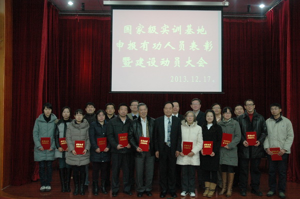 会议首先由王振州常务副院长宣读了江苏省财政厅、江苏省教育厅《关于下达2013年中央财政支持的职业教育实训基地建设专项经费和省级财政配套经费指标的通知》(苏财教〔2013〕198号)。根据文件精神,我院“机电一体化技术”实训基地建设项目荣获中央财政经费支持,是全省仅有的两所获此殊荣的民办高职院校之一,也是获得专项经费最高的院校之一。随后,徐忠院长宣读了《关于我院国家级实训基地申报和建设有功人员表彰的决定》,我院国家级实训基地建设获得了昆山市政府的大力支持并拨付配套资金,此次共有14名参与项目申报和建设的教师获得表彰。与会领导分别为获奖人员颁发了奖状,并合影留念。
