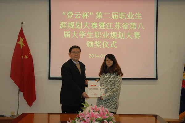 1月11日,我院为在江苏省第八届大学生职业规划大赛中获奖的学生举行颁奖仪式。徐忠院长、徐伟副院长分别为获得大赛二、三等奖的两名学生郑友娇、刘浩颁发了证书和奖品,并合影留念。