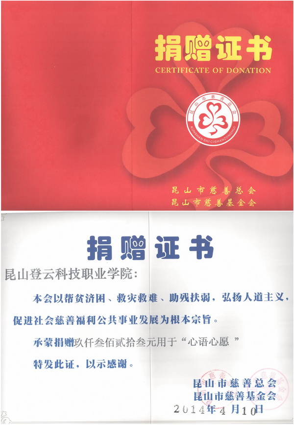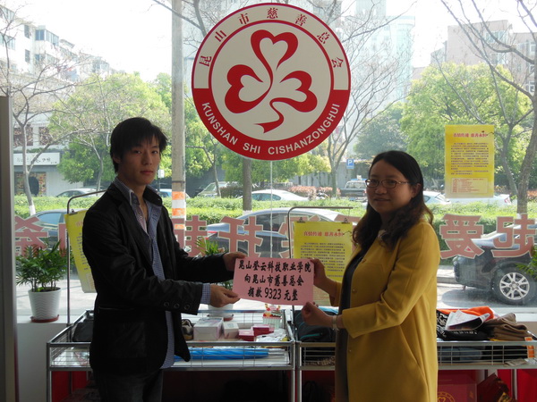 4月10日上午,我院将“让爱传递·登云先行”爱心义卖所得善款9323元和12包物资捐赠给了昆山市慈善总会。团委苏琼瑶书记参加了捐赠仪式。