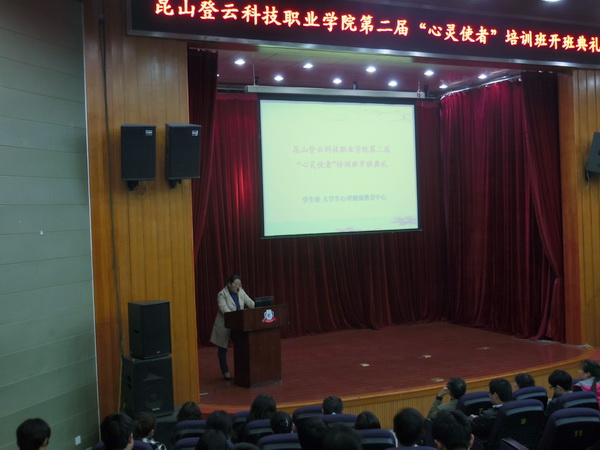 4月8日晚,培训班开班典礼在多功能报告厅举行。学生处老师、各系12、13级在校班级心理委员、宿管老师及宿管会学生干部参加了典礼。开班典礼在诵读“心理委员宣言”中拉开序幕。武凤鸣处长在开班典礼上作了讲话,对当今青年大学生的心理状况作了详尽分析,并对心理委员提出立足岗位职责、主动、热情、奉献的要求和期望。培训班设置了“常见心理问题的识别与引导”、“心理委员工作职责和心理班会的组织与实施”及“心理团体辅导”等课程。培训班的理论内容有深度,形式多样且生动有趣,学员们学习认真,全身心投入,受益颇深。4月17日举行了结业典礼,大会为各心理委员颁发了一、二、三级“心灵使者”结业证书。