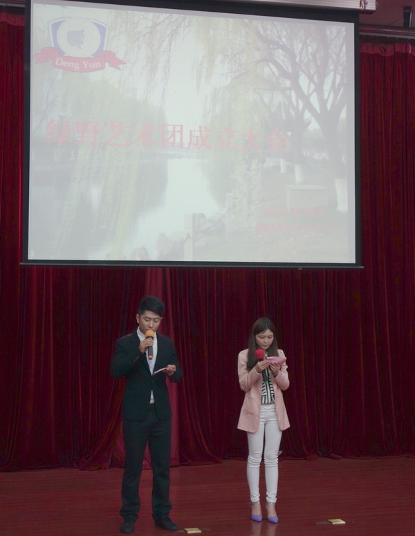 桂美庆副主任在致词中对绿野艺术团的成立表示热烈的祝贺,并介绍了绿野艺术团名称的由来和发展目标。绿野艺术团的命名取自电视剧《绿野》的名字,它讲述了村主任娟子带领村民脱贫致富的励志故事,以绿野为名象征着艺术团将脚踏实地、茁壮成长。同时,绿色的田野带给人们生机勃勃、心旷神怡的感觉,代表了艺术团青春奔放、活力四射。指导老师李磊介绍了艺术团的发展规划,绿野艺术团将立足本校,合理构建各子团队,创编特色节目,培养学生感受美、表现美、鉴赏美、创造美的能力,更好的服务于学生的成长成才。绿野艺术团下辖合唱队、古典舞蹈队、剧品队和戏曲队四支队伍,团长由龚家欢同学担任。龚家欢介绍了本团成立的背景和筹备的过程,四支队伍的队长分别介绍了本队的特色。随后,由各支队伍给大家带来了热情洋溢、丰富多彩的节目。