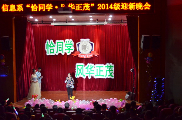 金秋十月,硕果飘香,崭新学期,崭新希望,信息系 “恰同学·风华正茂” 2014级迎新晚会于10月29日在多功能报告厅举行。徐忠院长、院办陈俊主任、学生处武凤鸣处长、信息系王淑英主任、各系学工主任、各系团总支书记、信息系全体辅导员及新生观看了本次晚会。