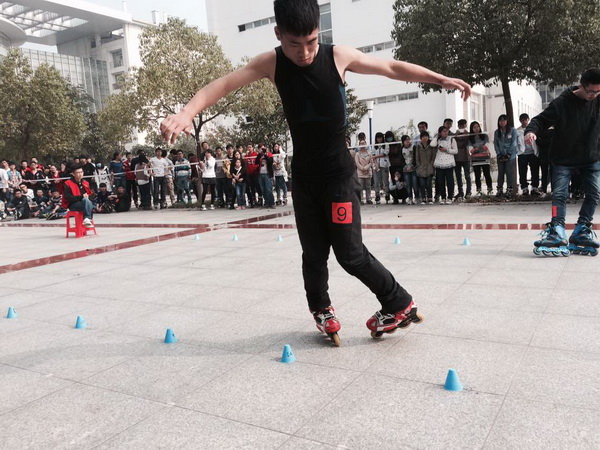 11月1日上午10点,轮滑交流赛正式开始,来自江苏各地40所高校的200多名参赛选手的集体轮滑表演拉开了比赛序幕,现场热闹非凡。在开场的“Crazy”比赛中,我院轮滑社社员李智伟、施岩、李龙强、张永成、付大伟同学过关斩将,经过1个多小时的激烈角逐,李智伟同学荣获“Crazy”比赛项目第5名。下午团体障碍接力赛,我院轮滑社获得第6名。比赛结束后,南师大李莫妍同学向我院史迪伟同学发出了 “2015年江苏省高校社联交流会” 参会邀请。