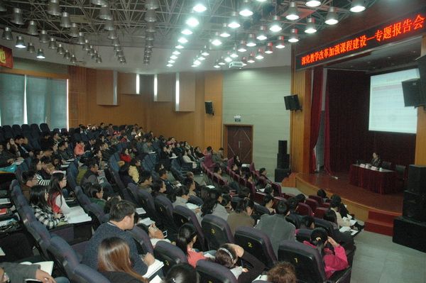 11月19日下午,我院2014-2015学年教学工作系列培训活动第二场专题讲座在多功能厅如期举行。苏州健雄职业技术学院教务处许劲松处长为我院教职工作了《课程标准的制定原则及执行保障》主题讲座。本次讲座由教务处主办,王振州常务副院长主持。