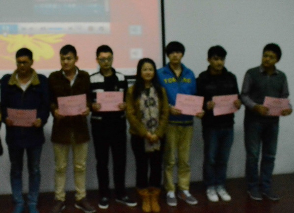 会上,朱爱梅宣读了获奖学生名单,王丹、陈长伟为获奖学生颁发了证书和奖金。机电一体化12-9专班优秀学生代表万宇在发言中表达了对学院老师、公司领导和同事的感谢,要坚定“不经历风雨,怎么见彩虹”、“心有多大、舞台便有多大”的信念,努力学习工作,以此回报学院和公司的培育之恩。王丹首先对获奖学生表示祝贺,感谢登云学院与洽兴公司的合作,并与同学们分享了“务实、踏实、确实”的公司理念,并希望同学们要尽力实现自己的人生价值。