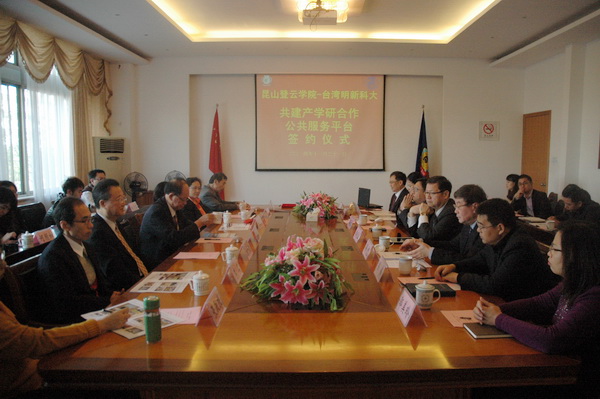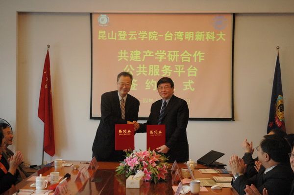 仪式开始前双方就关切的一系列问题作了广泛深入的交流,会场气氛热烈而融洽。徐忠院长在致欢迎辞中表达了对明新科大的热烈欢迎和衷心的感谢。随后双方观看了登云学院宣传短片,并围绕“公共服务平台”建设这一主题各抒己见。李先立执行董事围绕“‘产、学、研、用’四位一体”的职业教育发展理念阐述了搭建“公共服务平台”的初衷和愿景。袁保新校长从台湾技职教育发展与产业转型的角度介绍了明新科大的发展历程,并对我院办学理念和坚守职业教育的决心给予高度肯定。张绍忠董事长在讲话中表示,希望双方以此次签约仪式为契机,进一步深化落实合作内容,制定合作项目进度表,真正实现“‘产、学、研、用’四位一体”的职业教育发展理念。