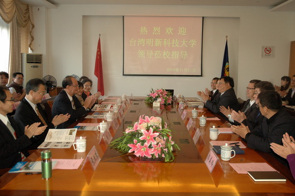 11月21日上午10时许,台湾明新科技大学张绍钧董事长、袁保新校长、黄信行教务长等一行8人应邀来到我院出席“beat365会员官方网站--台湾明新科大学共建产学研合作公共服务”签约仪式。我院李先立执行董事、徐忠院长等领导出席了签约仪式。仪式由王振州常务副院长主持。