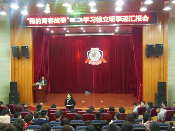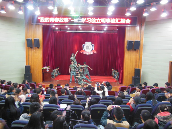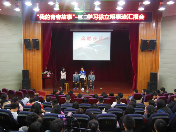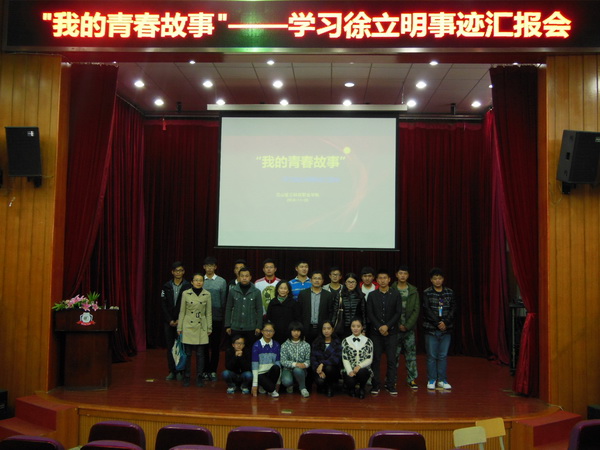 为进一步传递青春正能量,唱响校园道德主旋律,对开展近两个月向救火英雄徐立明学习系列活动进行总结,11月26日晚,我院在多功能厅召开“我的青春故事”——学习徐立明事迹汇报会。220余名师生参加了本次活动。报告会由学生处处长助理李源泉主持。