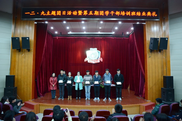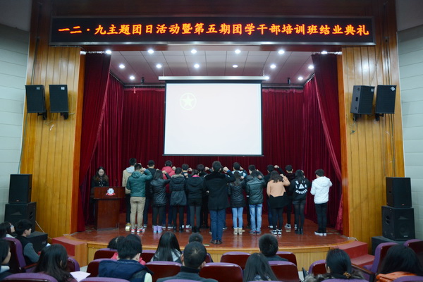 12月9日晚,我院“一二?九”主题团日活动暨第五期团学干部培训班结业典礼在多功能报告厅隆重举行。党委副书记徐伟副院长、学生处武凤鸣处长、团委老师、各系团总支老师和学生代表参加了活动。