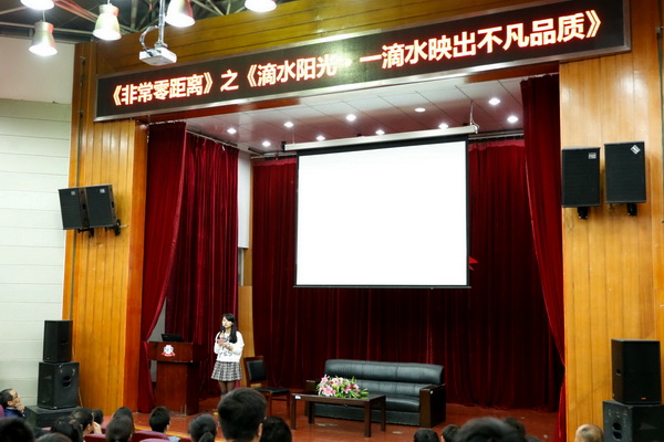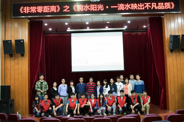 5月7日晚,由信息系承办的学生处的品牌访谈节目、大学生成长体验活动《非常零距离》之“滴水阳光,一滴水映出不凡品质”在我院多功能报告厅与大家准时相约。节目诚邀学生处处长武凤鸣、团委书记苏琼瑶参加,300多名师生代表现场观看了节目。