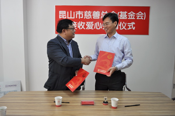 5月22日上午,昆山市慈善总会捐赠协议签字仪式在我院举行。昆山民政局副局长刘平,我院常务副院长王振州作为双方代表在捐赠协议上签字。