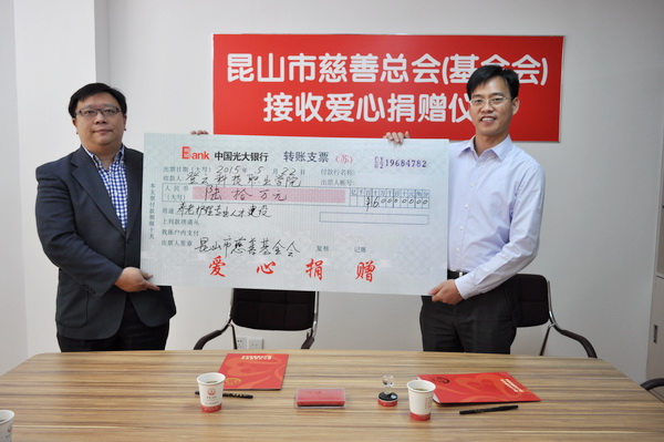 为了助推昆山养老服务事业发展,昆山慈善基金会实施了在我院设立老年服务专业人才培养专项基金的计划。老年服务专业人才培养专项基金设立时间为2015年至2017年;基金额度为每年20万;用作困难新生奖励金,优秀困难学生奖学金,专业技能突出学生奖励金,在昆山实习、就业学生奖励金。此专项基金2015年发放范围为老年服务与管理专业的12级、13级、14级与15级的学生,符合条件的学生最多可以获得7500元的奖金。