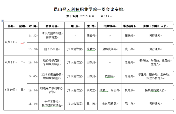 学院第十五周(2015.6.8—6.12)会议安排