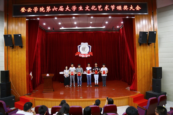 6月25日晚,我院第六届大学生文化艺术节颁奖大会在多功能报告厅举行,学生处处长武凤鸣、团委书记苏琼瑶,各系辅导员代表和两百余名获奖同学参加大会。