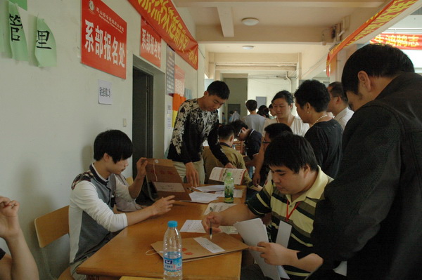 各系都在1号教学楼设置了报到处,系领导、老师和学生志愿者一大早就来到迎新点,用真诚的笑容和耐心的服务迎接新生的到来。除了不断往返于车站与学校之间接新生和送家长返回的校车,学校还安排了车辆送家长和学生去银行办理存取款业务,贴心的服务赢得家长的好评。