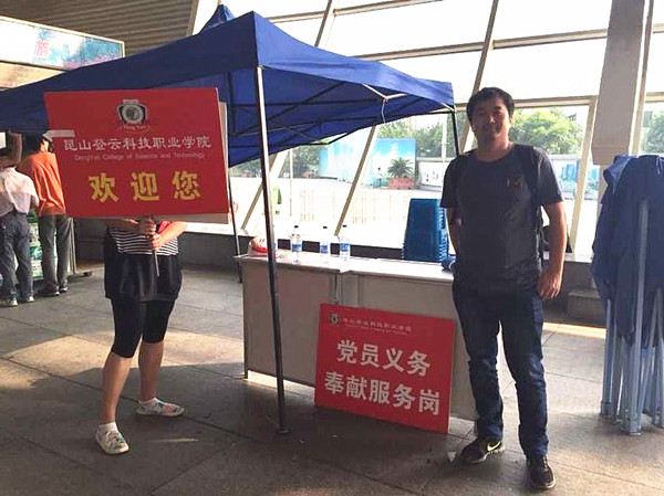 为贯彻落实中央《关于加强服务型党组织建设的意见》精神,响应学院《关于做好“党员义务奉献活动日”的通知》号召,公共课部党支部于9月5日、6日迎新期间,开展了“党员义务奉献”活动,主要负责各车站迎新接待点的服务工作。