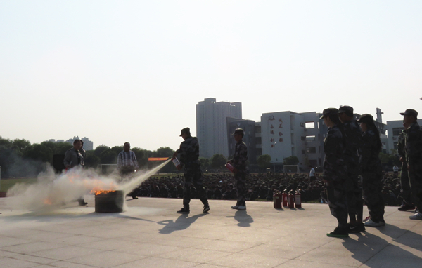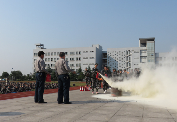为了加强新生预防火灾的意识,提高火灾发生时的自救逃生能力,10月11日下午,我院学生处、保卫处组织近700名新生,在操场和J3教学楼举行了“消防进军训”火灾(应急)预防专题教育和疏散模拟演练活动。