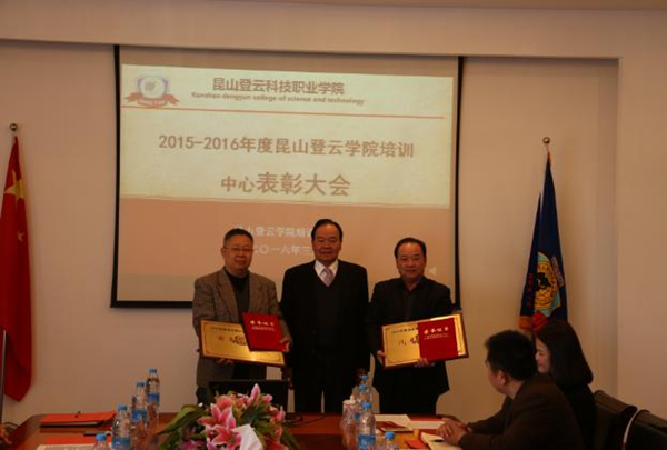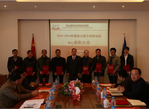 3月25日,培训中心2015-2016年度表彰大会在J2楼大会议室举行,林赐农董事长、李先立执行董事、沈尤成监事、郑家泰荣誉院长,院领导钱勤元院长、王振州常务副院长、王波副院长、徐伟副院长、陈长伟院长助理等出席会议,各部门负责人、各系主任、副主任及获奖教师代表参加会议。会议由王振州常务副院长主持。