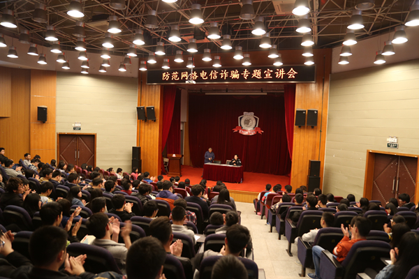 为进一步提高学生预防网络电信诈骗的安全意识,保护学生财产安全,营造良好学习环境,4月6日下午,学生处、保卫处联合科教园派出所在多功能报告厅举行“预防网络电信诈骗专题宣讲会”,学生处、保卫处负责人及全体辅导员参加活动,各班级干部代表聆听了宣讲。