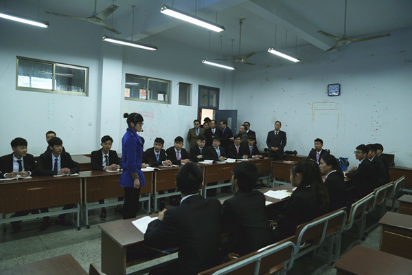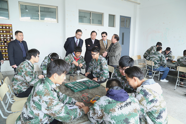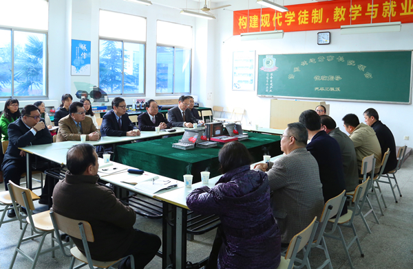 刘言强主任向林赐农董事长等领导介绍了汽车系实施“理实一体化”教学改革的思路、前期实训室的筹备以及当前教学实施进程等情况。随后,林赐农董事长一行考察并观摩了系全车底盘结构认知与检测实验室、发动机结构拆装与调整实验室、发动机结构与认知与测量实验室及校企共建汽车美容实验室等实训课的现场教学。