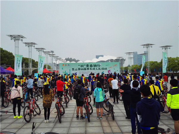 4月24日,由共青团昆山市委员会、昆山市青年联合会主办,昆山市文明办、台办、教育局、体育局协办,江苏捷安特自行车文体基金会承办的“羽”青春骑行——昆山第四届青年单车成人礼活动在体育中心广场隆重举行。来自beat365会员官方网站、昆山市国际学校、台资华裔学校等在昆院校的160名余名青年学生参加了本次活动。