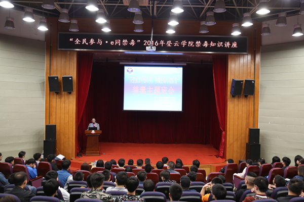 为进一步提高学生防毒拒毒的意识和能力,4月26日下午,我院学生处、保卫处联合昆山市娄江街道办事处、昆山市公安局科教园派出所、昆山市自强社会服务社等举办了“全民参与?e同禁毒”2016年禁毒知识教育讲座,学生处、保卫处负责人参加活动,各系学生干部代表聆听了讲座。