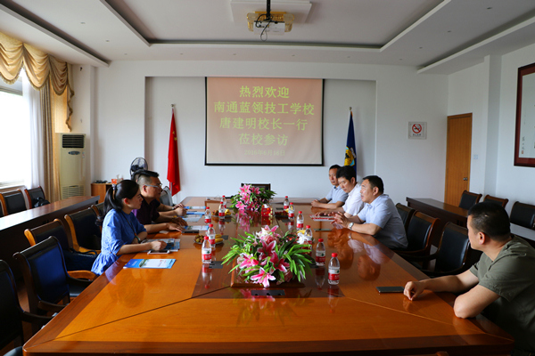 6月16日上午,南通市蓝领技工学校校长唐建明一行3人莅校参访交流,受到王波副院长的热情接待。机电系、招生办、中高职衔接办公室负责人陪同接待。