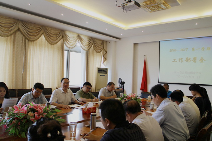 会上,钱勤元院长首先对暑假期间,后勤部门冒着炎热如期完成教学楼和学生宿舍的维修粉刷施工,教务机电汽车商管等系部组织人员加班加点完成省级产教深度融合实训平台的申报工作,其他相关部门根据需要派员值班加班,确保了教师学生下企学习、学生参军政审收费等工作的正常运转,表示衷心感谢!接着传达了省教育厅在全省高校领导干部会上关于《高等教育普及化阶段的高等学校分类发展》的讲话精神,重点就江苏省高等教育跨入普及化阶段后如何发展、为何要推进高校分类发展及推进高校分类发展的主要任务进行了解析,指出我们要认真贯彻上级精神,为努力打造高职教育高峰、提升人才培养质量、提升高校服务发展水平、创新民办高等教育发展之路作出应有的贡献。关于新学期开学工作,钱院长作了总体部署并提出了三点要求:一是各系部各部门要及时召开会议,传达落实好会议精神,安排好开学工作;二是要秉持“以学生为本、方便学生、服务学生”的原则,认真落实每个接待环节,全力以赴做好迎新工作,党员同志要发挥模范作用;三是依据学院全年工作目标,扎实推展下半年工作,要立足当前,狠抓落实,要走创新发展道路,顺应大数据发展潮流,任务的完成情况以数据说话。